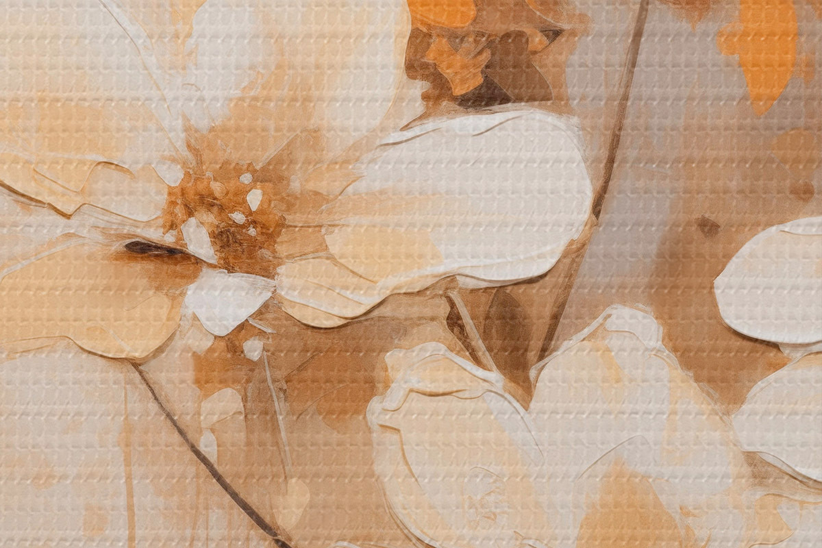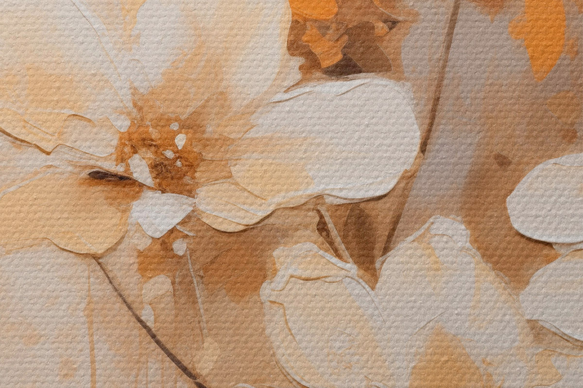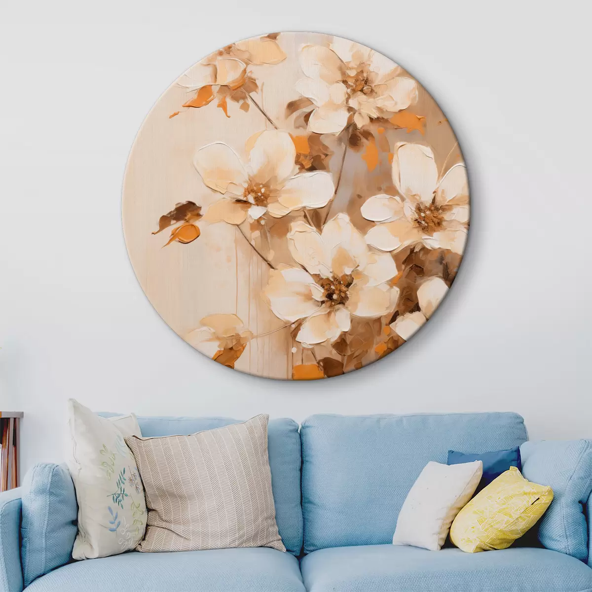 Tableaux rondes Fleurs blanches avec feuilles orange, coups de pinceau délicats, arrangement floral, art botanique Nr r45574