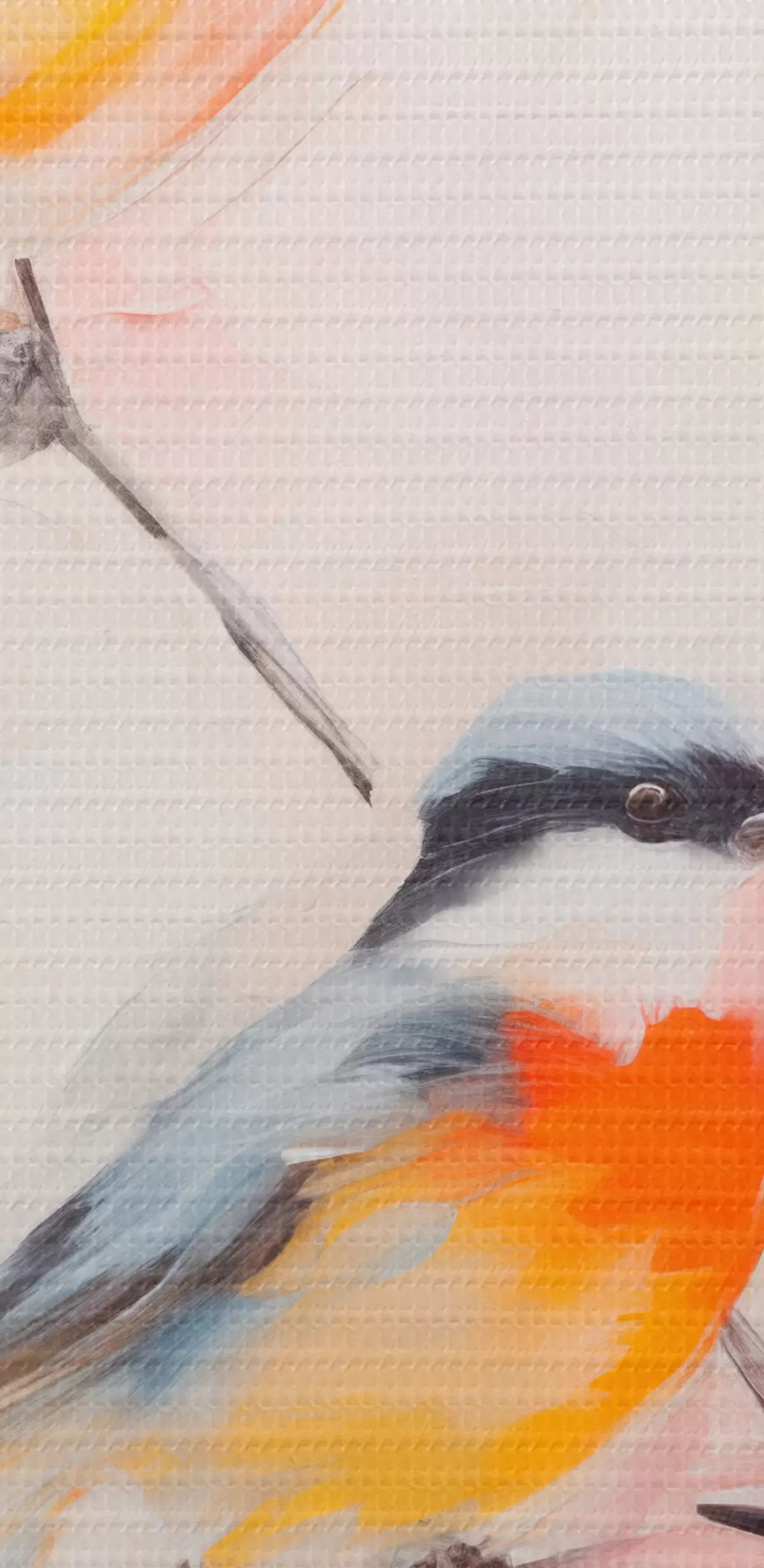 Tableaux rondes Oiseaux perchés sur des branches, couleurs douces et pastel, fond clair avec des teintes roses et blanches Nr r45577