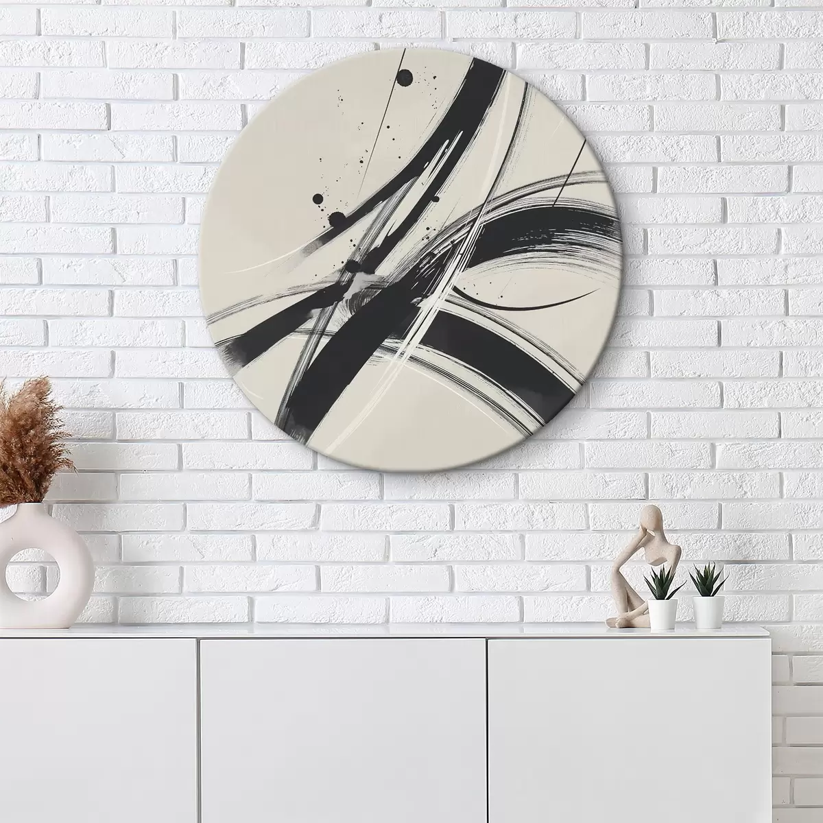 Tableaux rondes Coups de pinceau abstraits et minimalistes r45583