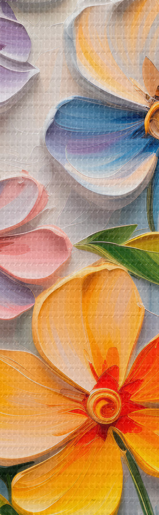 Tableaux rondes Nature morte florale : fleurs multicolores en technique d'empâtement r45598