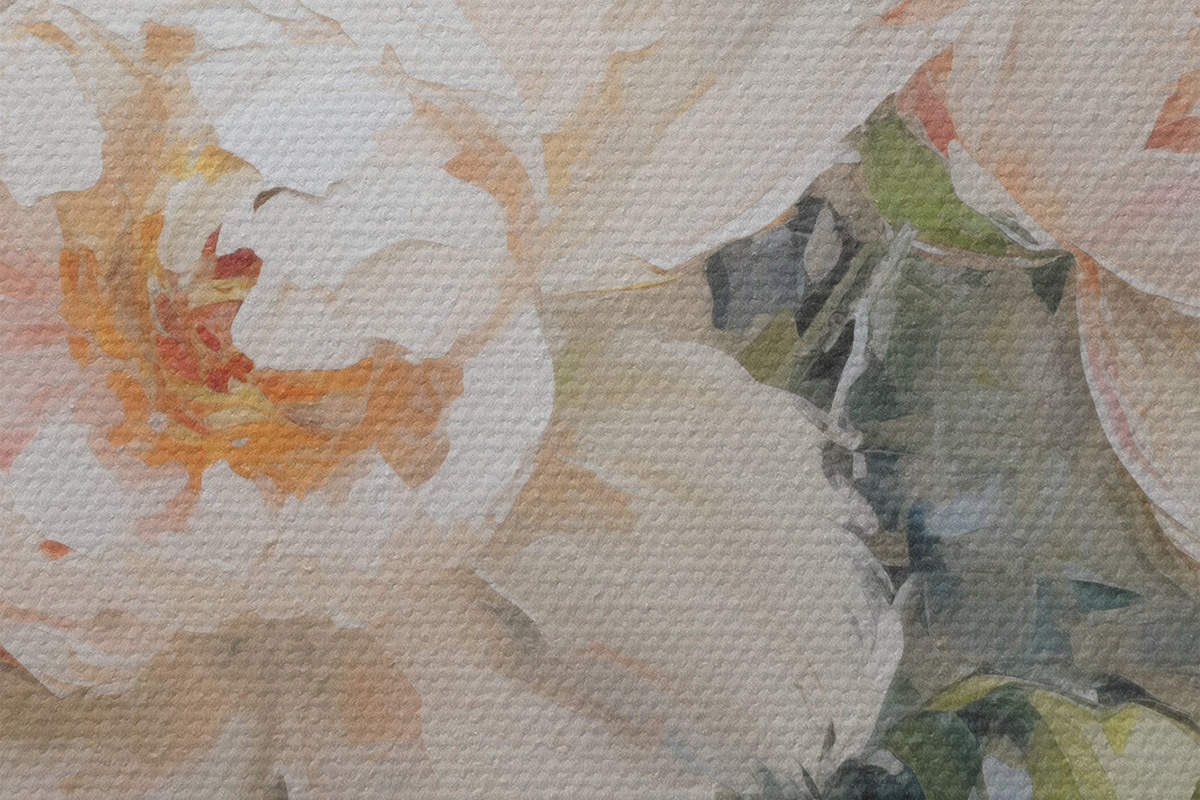 Trois types de matériaux peuvent être commandés : Economic Canvas - matériau dense et durable pour l'impression numérique, identique à la toile de peintre, surface imperméable, reproduction réaliste des détails, matériau à grain moyen. Premium Canvas - la texture ressemble à celle d'une toile de peintre (petits fils entrelacés). Reproduction douce et détaillée de l'image sur une surface mate. Eco-Premium - tissu 100 % coton de haute qualité. Grâce aux fibres naturelles de coton, le matériau est durable et résistant à l'usure. Excellente reproduction des couleurs et des détails.