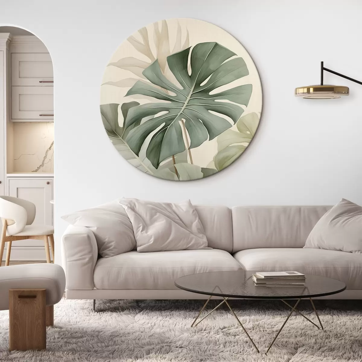 Tableaux rondes Grande feuille de monstera Nr r45616
