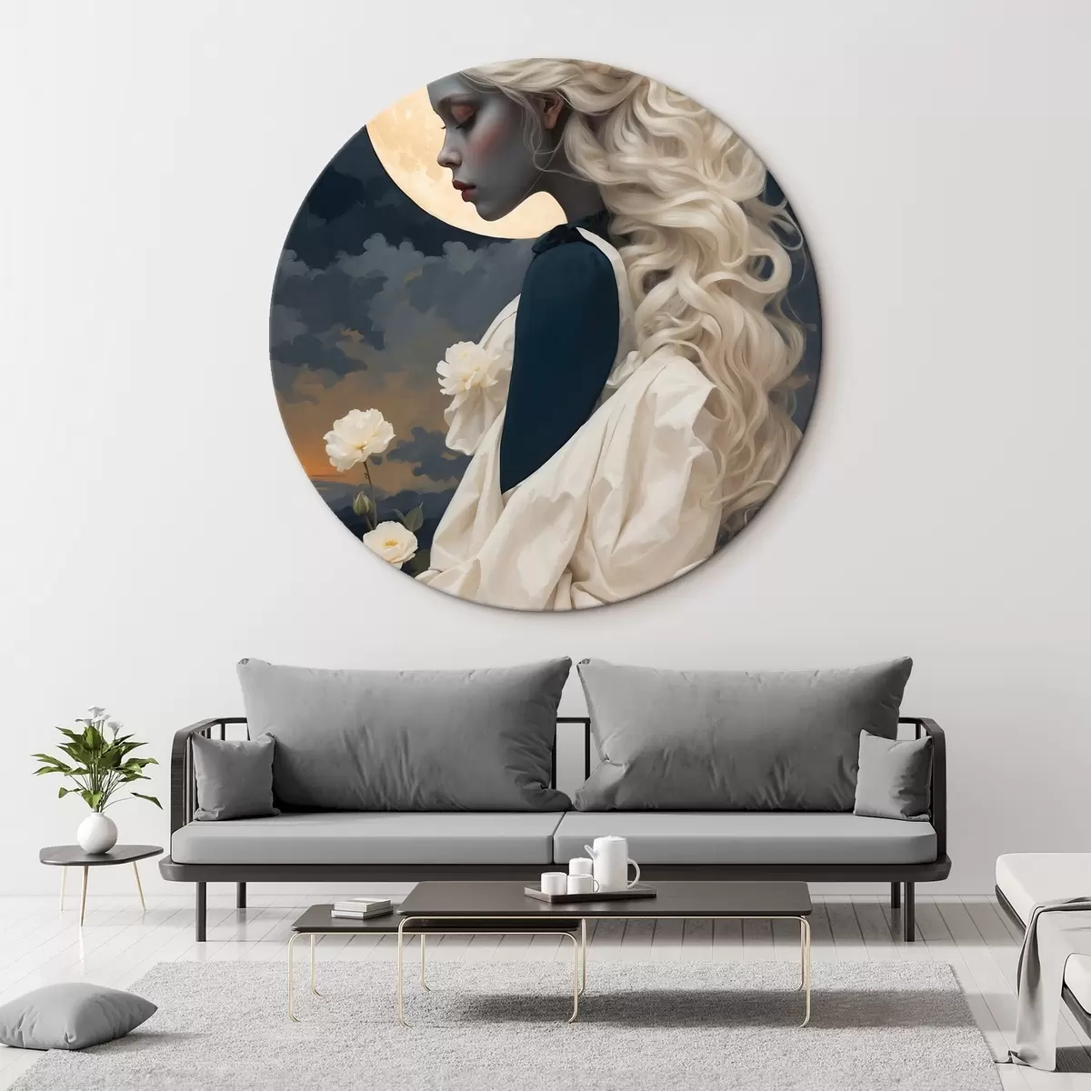 Tableaux rondes Femme aux cheveux blancs sous la lune r45622