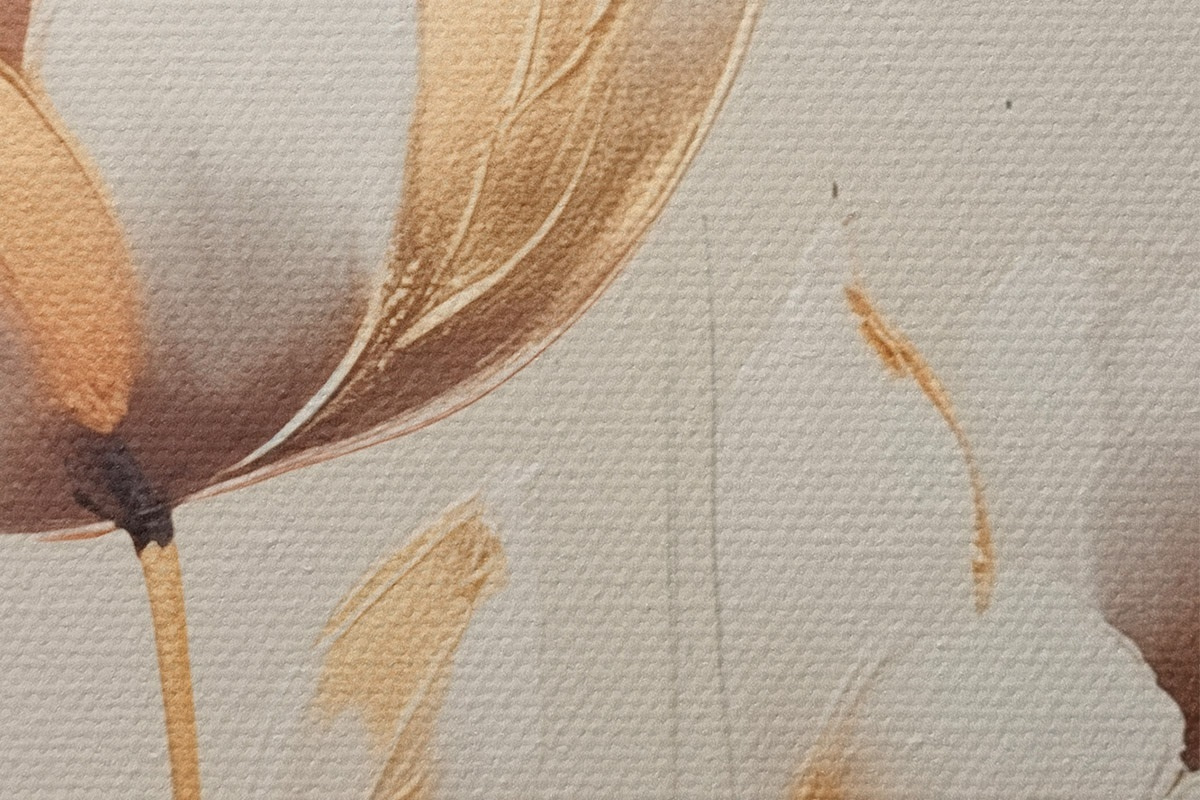 Trois types de matériaux peuvent être commandés : Economic Canvas - matériau dense et durable pour l'impression numérique, identique à la toile de peintre, surface imperméable, reproduction réaliste des détails, matériau à grain moyen. Premium Canvas - la texture ressemble à celle d'une toile de peintre (petits fils entrelacés). Reproduction douce et détaillée de l'image sur une surface mate. Eco-Premium - tissu 100 % coton de haute qualité. Grâce aux fibres naturelles de coton, le matériau est durable et résistant à l'usure. Excellente reproduction des couleurs et des détails.