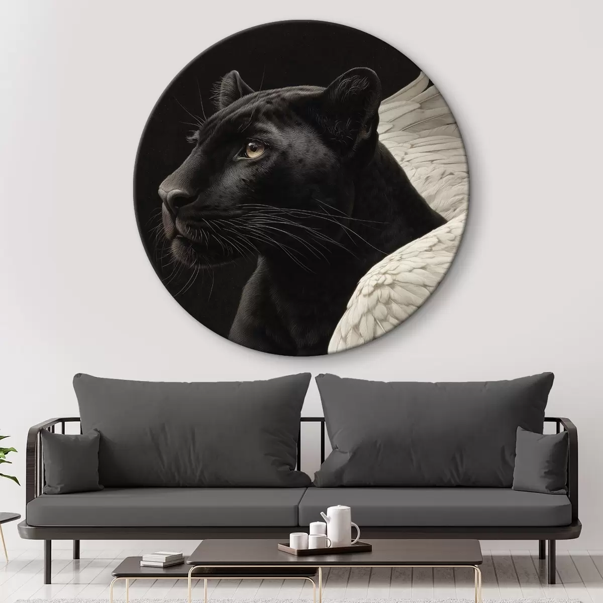 Tableaux rondes Panthère noire avec ailes dans un style fantastique r45653