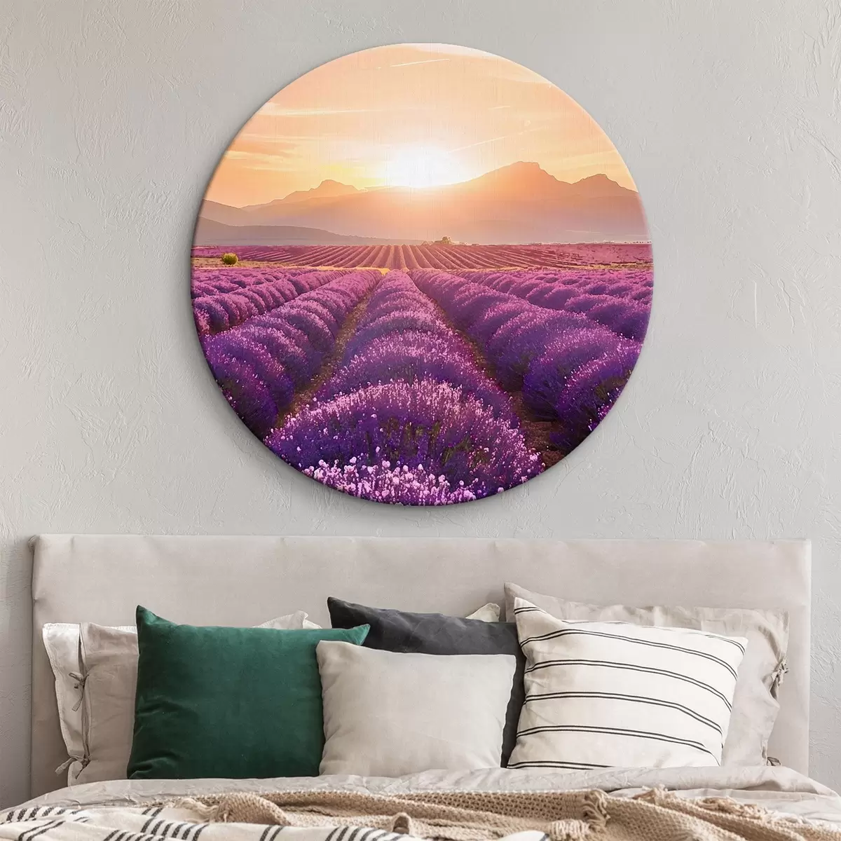Tableaux rondes Coucher de soleil dans un champ de lavande r45663