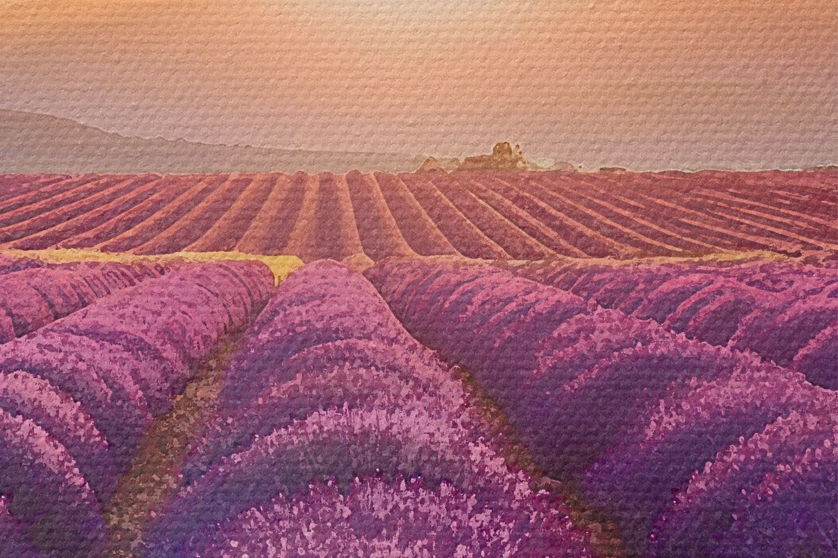 Tableaux rondes Coucher de soleil dans un champ de lavande Nr r45663