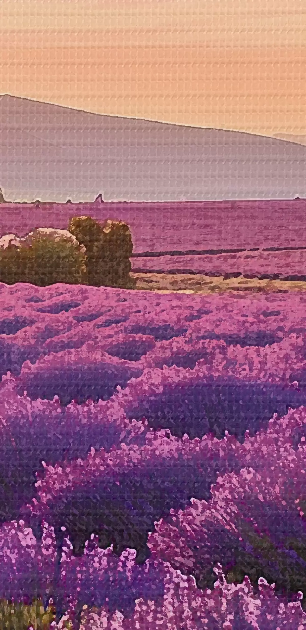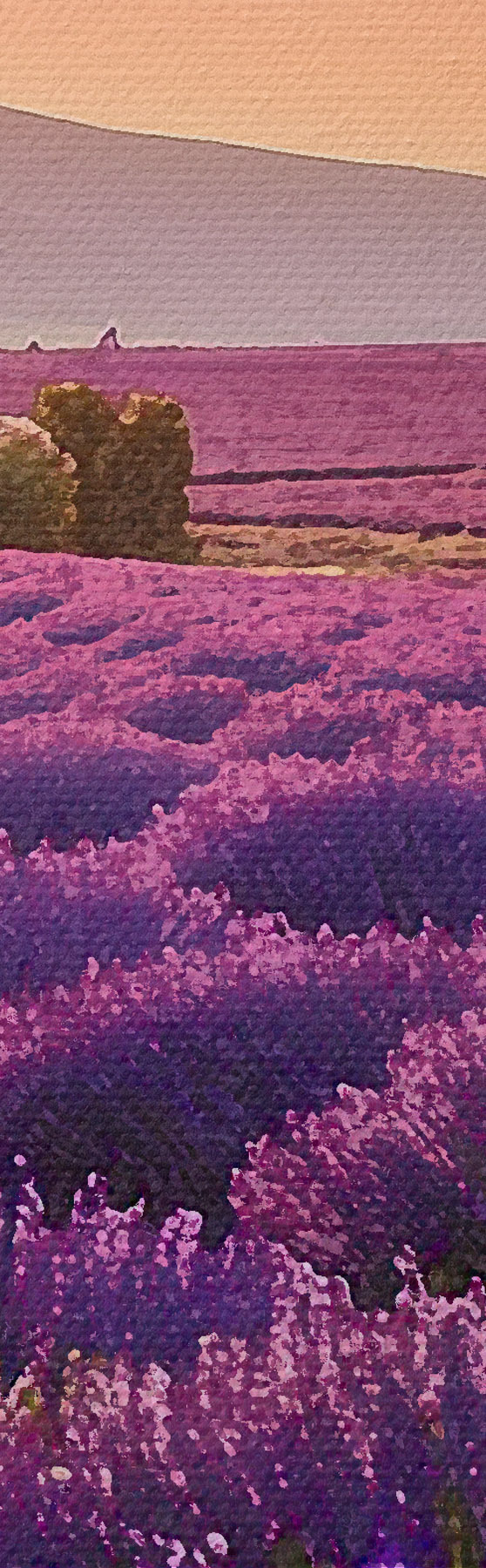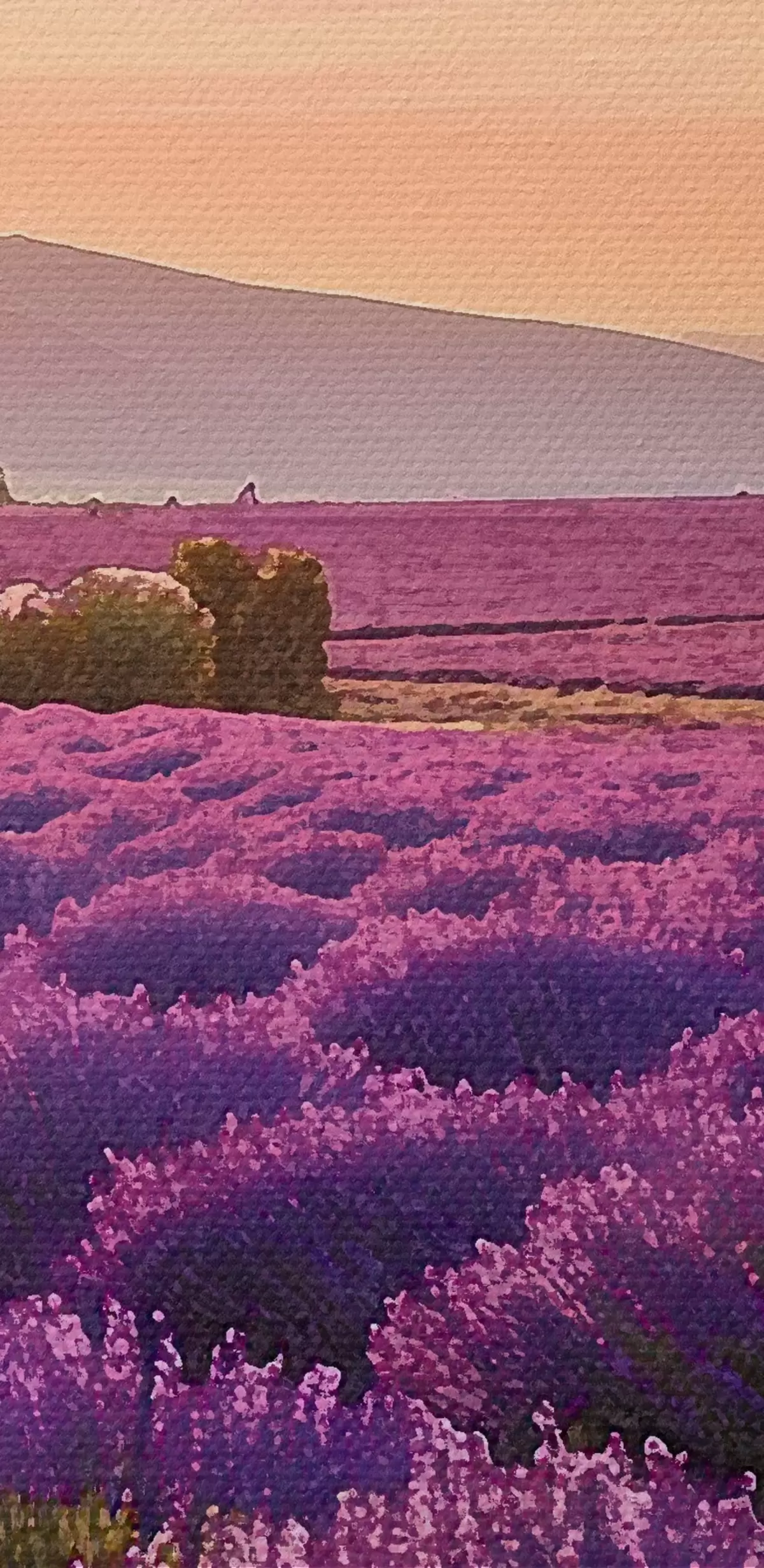 Tableaux rondes Lavande sur fond de coucher de soleil dans les montagnes Nr r45664