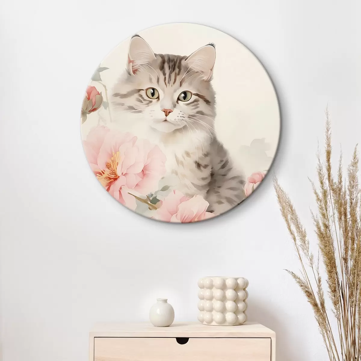 Tableaux rondes Chat parmi les fleurs Nr r45674