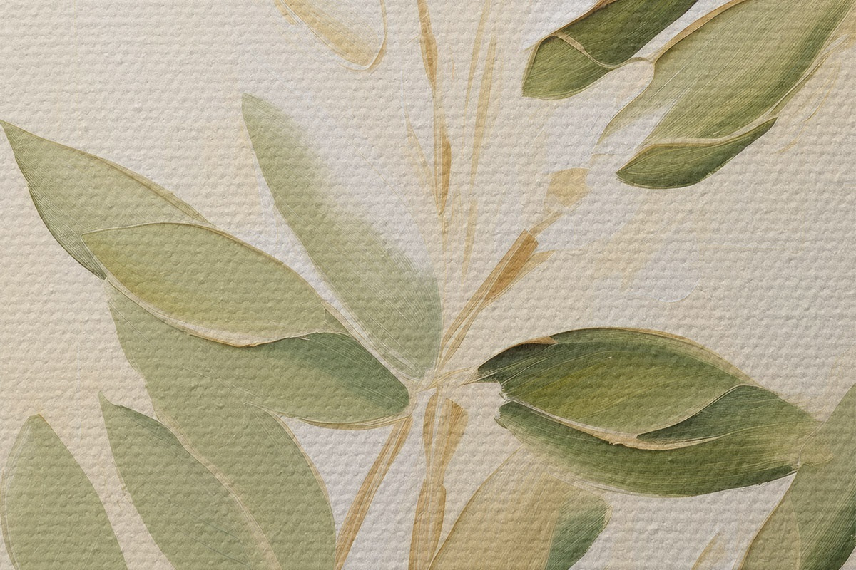 Tableaux rondes Branche avec des feuilles vertes sur un fond beige clair Nr r45689