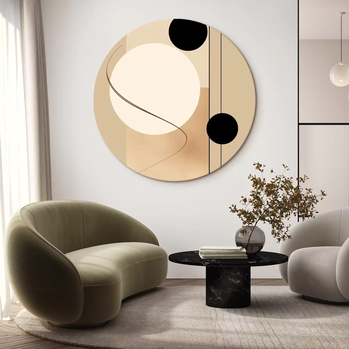 Tableaux rondes Cercles abstraits minimalistes sur fond beige Nr r45699