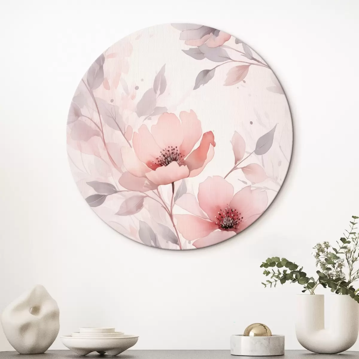 Tableaux rondes Fleurs délicates rose-gris avec effet aquarelle Nr r45702