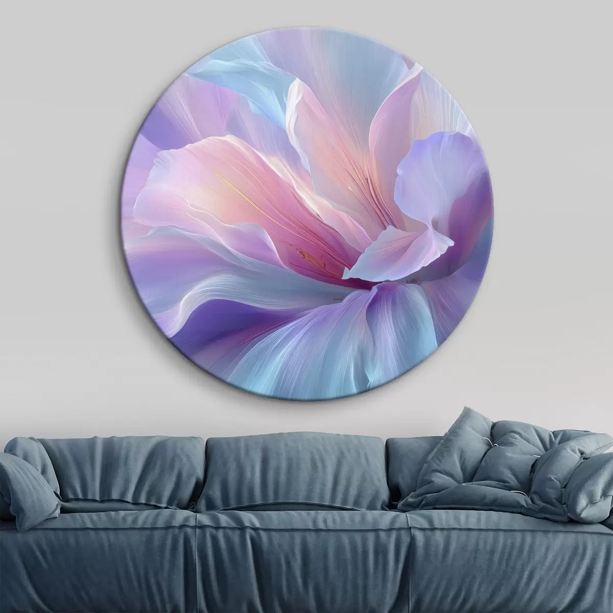 Tableaux rondes une fleur fantaisiste délicate aux pétales dans les tons violet, bleu et rose. r45710