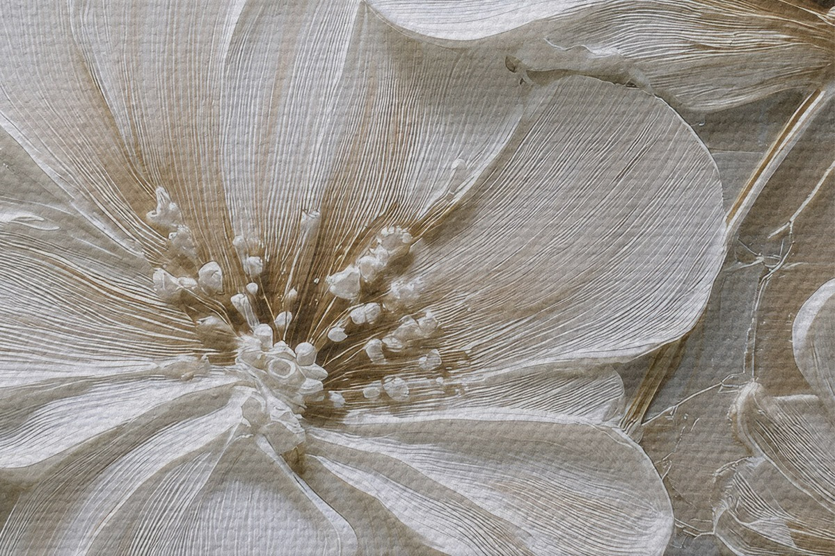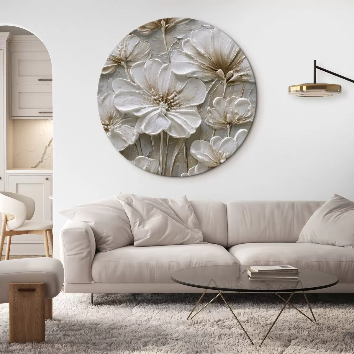 Tableaux rondes fleurs en crème avec imitation de style impasto Nr r45712