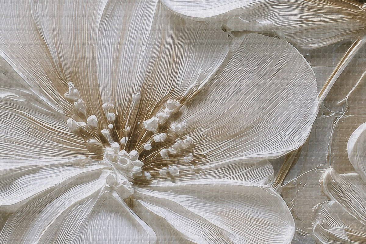 Tableaux rondes fleurs en crème avec imitation de style impasto r45712