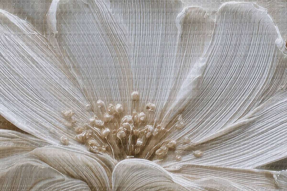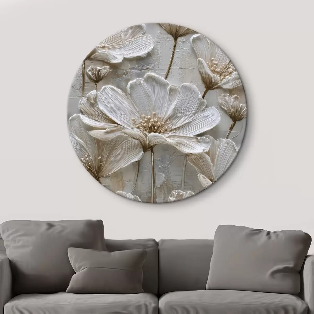 Tableaux rondes fleurs en crème avec imitation de style impasto r45713