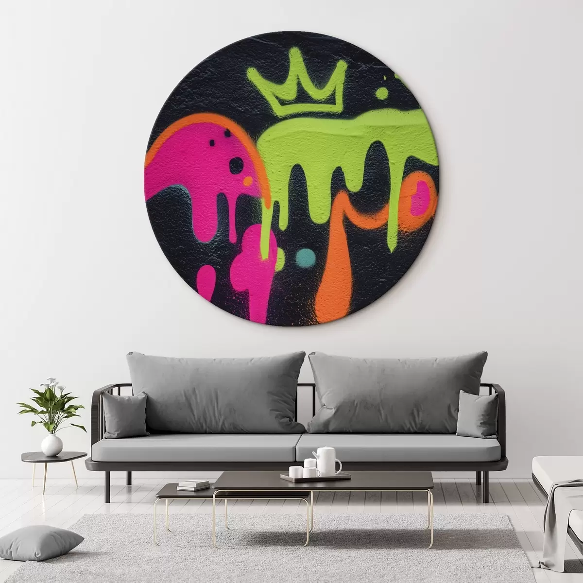 Tableaux rondes graffiti lumineux sur fond sombre r45716