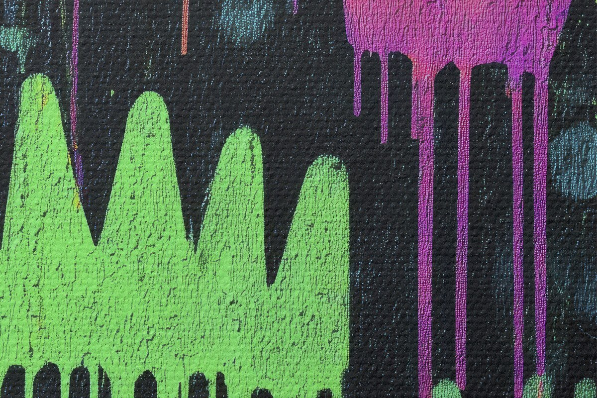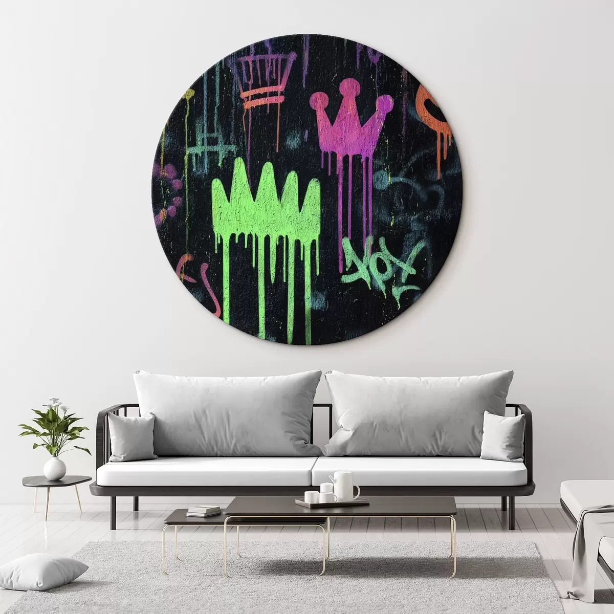 Tableaux rondes graffiti lumineux sur fond sombre Nr r45718