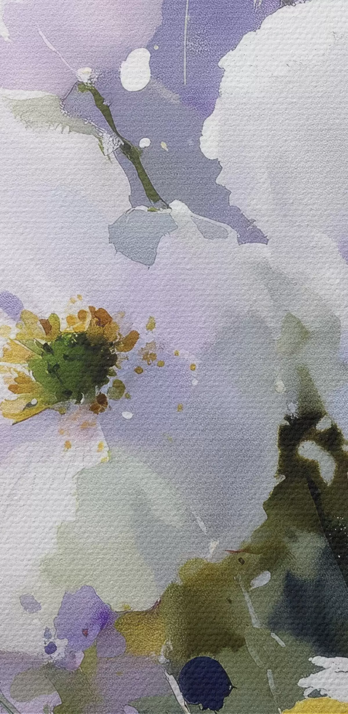 Tableaux rondes bouquet aquarelle dans les tons lilas et blanc Nr r45719