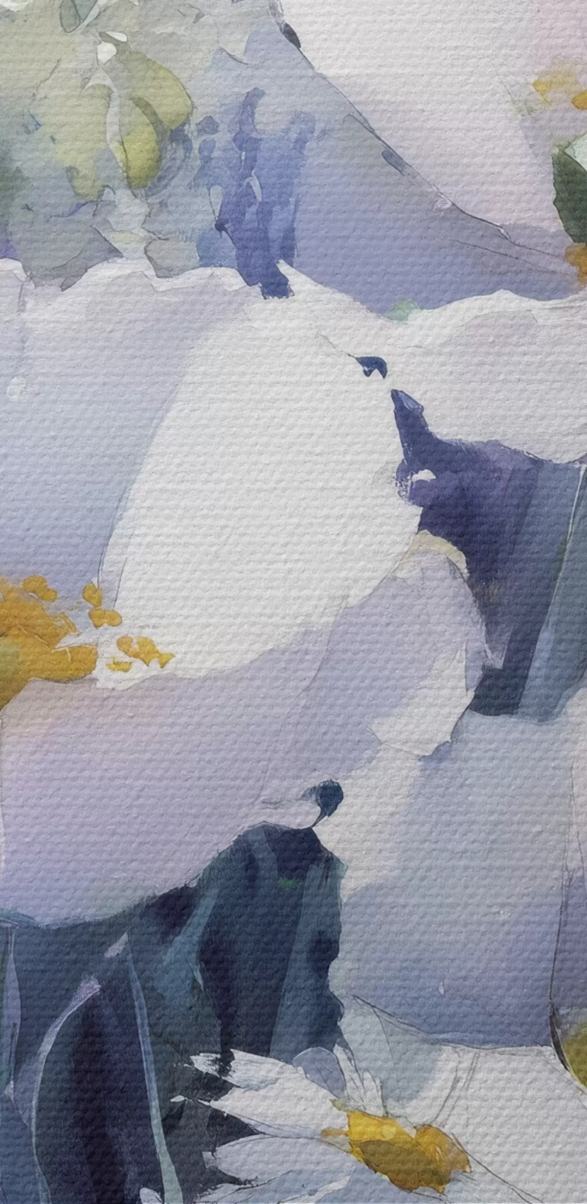 Tableaux rondes bouquet aquarelle dans les tons lilas et blanc Nr r45720