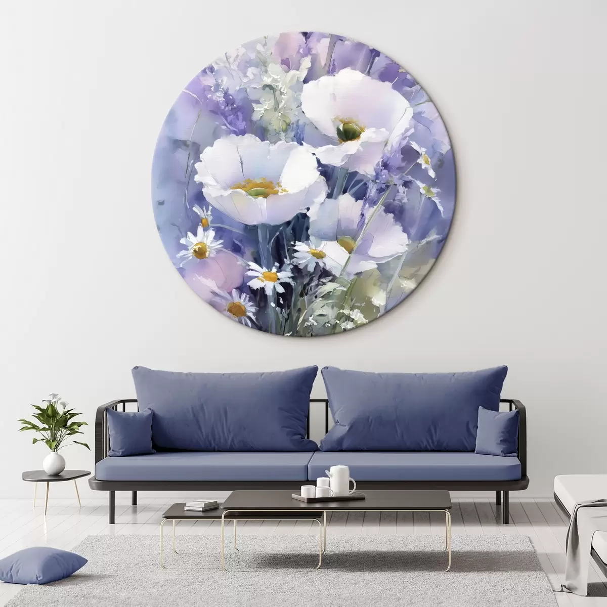 Tableaux rondes bouquet aquarelle dans les tons lilas et blanc Nr r45720
