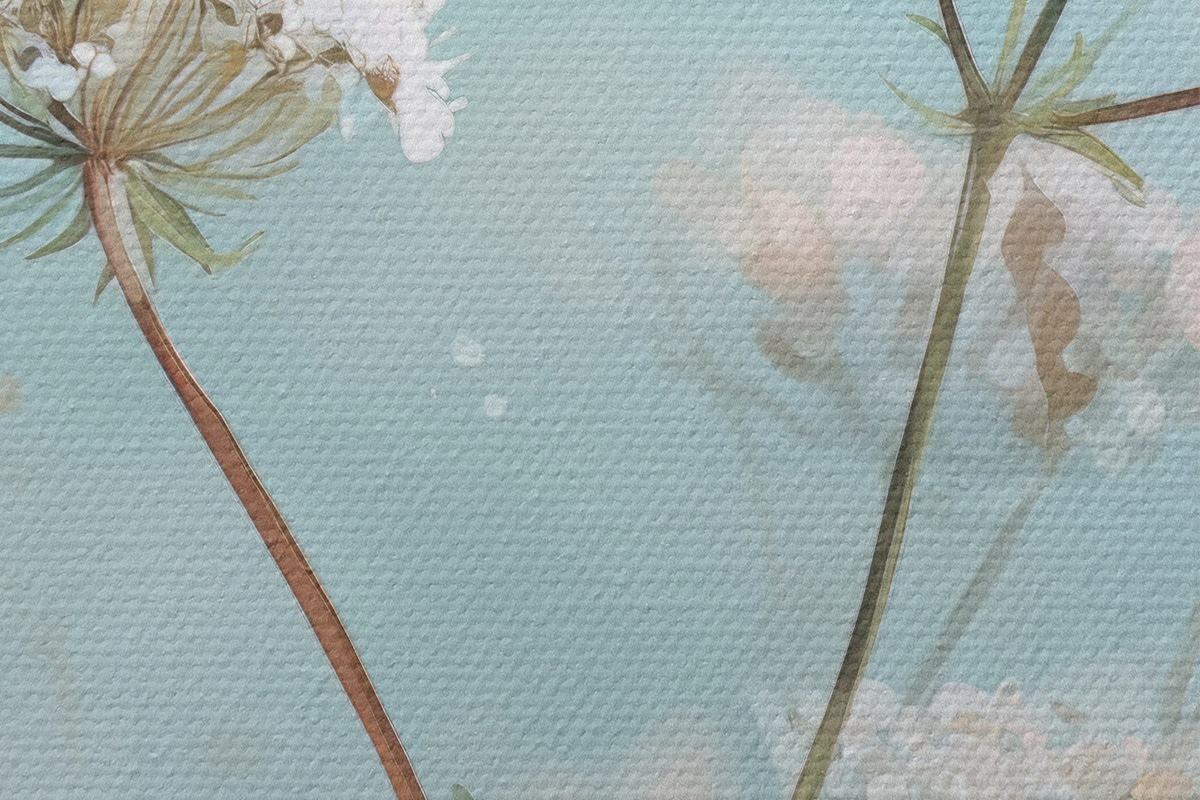 Tableaux rondes Fleurs de Queen Anne's Lace peintes à l'aquarelle sur fond bleu Nr r45722