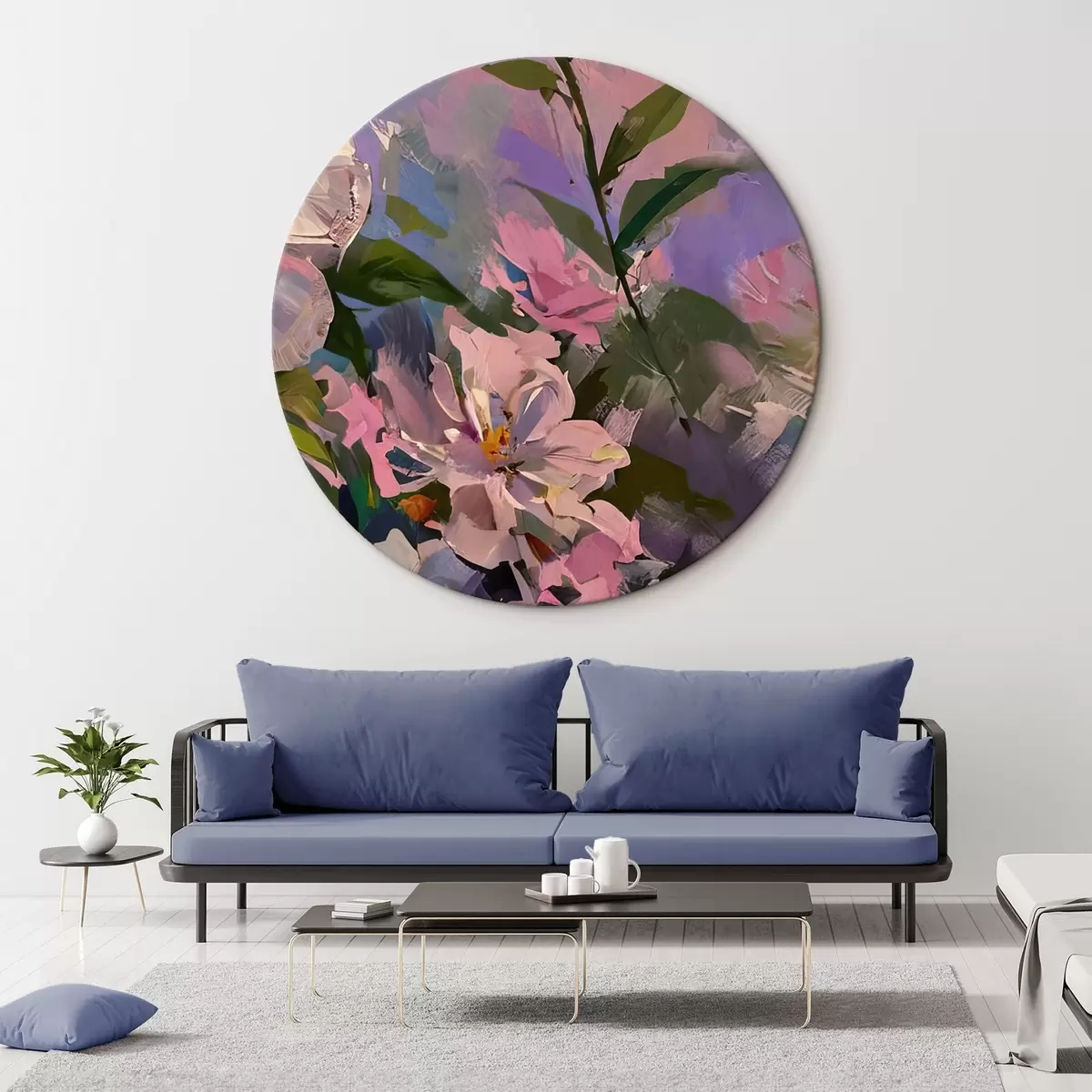 Tableaux rondes fleurs roses dans le style de la peinture à l'huile r45724
