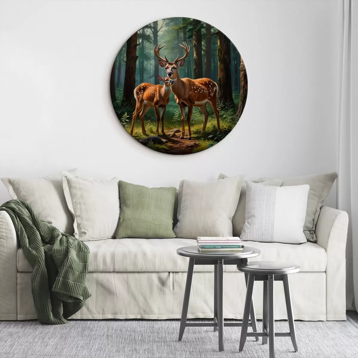 Tableaux rondes cerf avec faon dans la forêt r45732