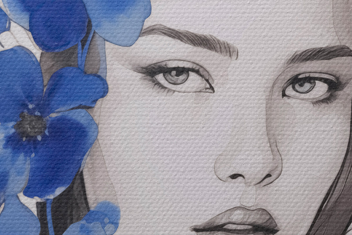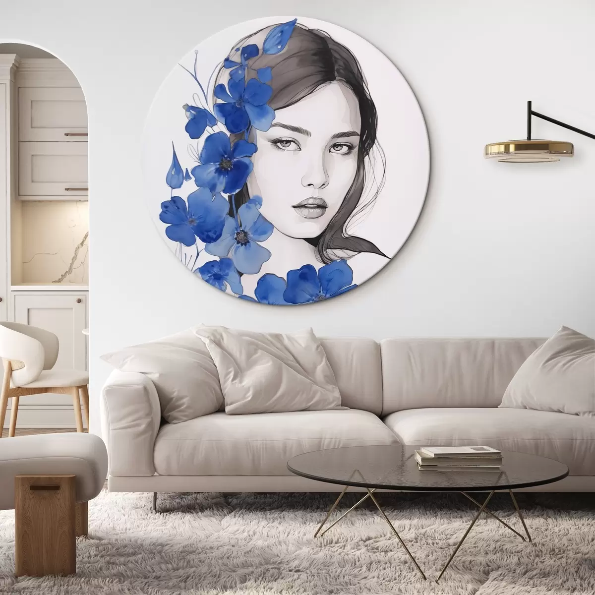 Tableaux rondes Fille et fleurs bleues Nr r45757