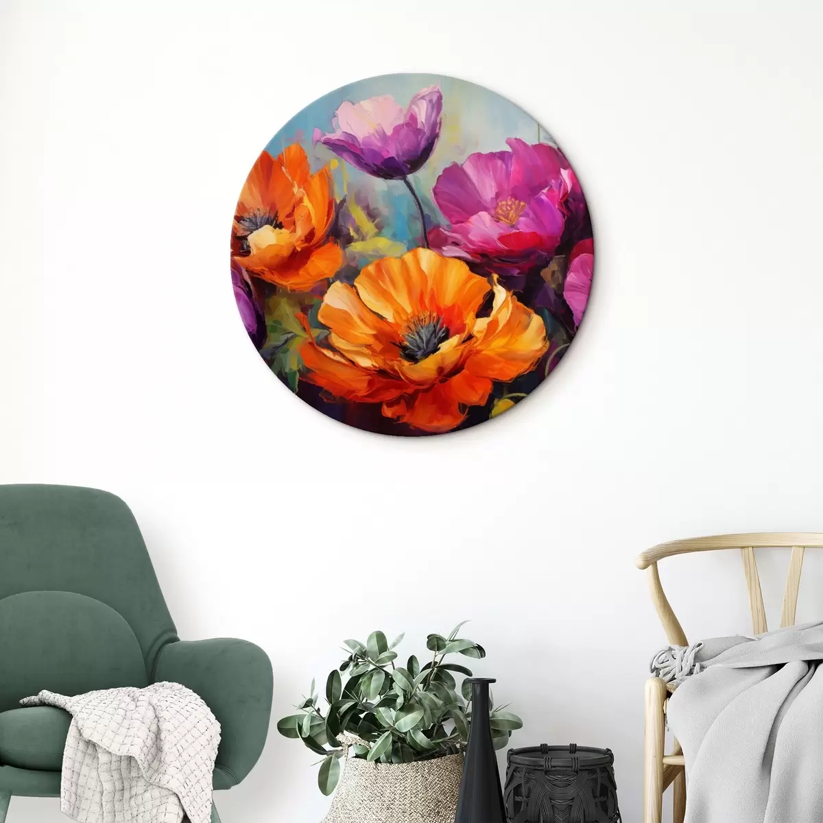 Tableaux rondes Coquelicots lumineux dans des tons violets et orange r45804