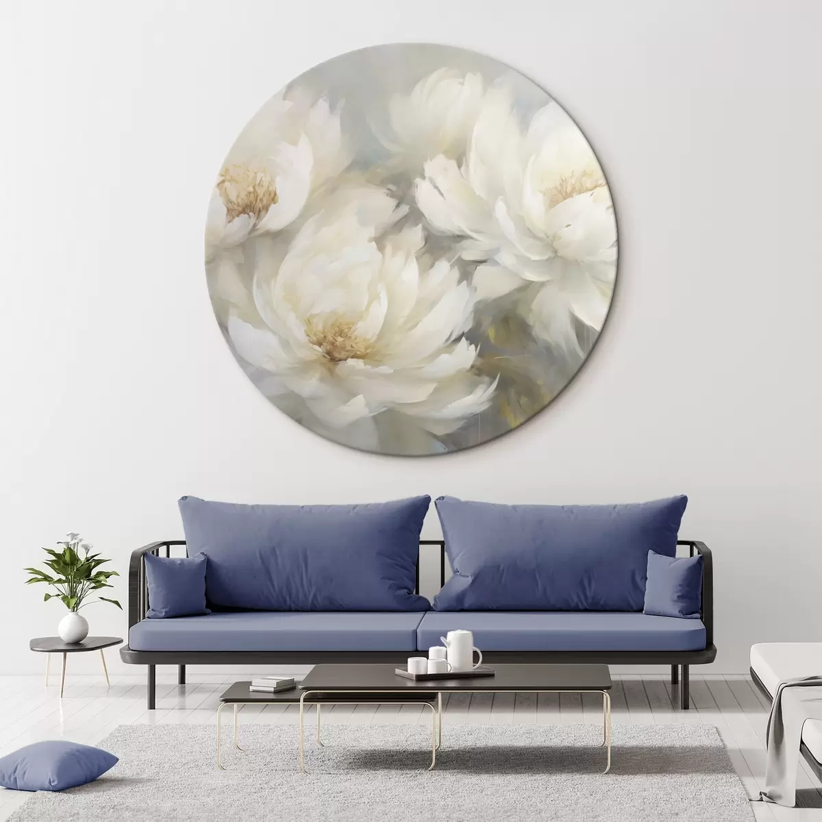 Tableaux rondes Trois pivoines blanches luxuriantes sur un fond délicat Nr r45808