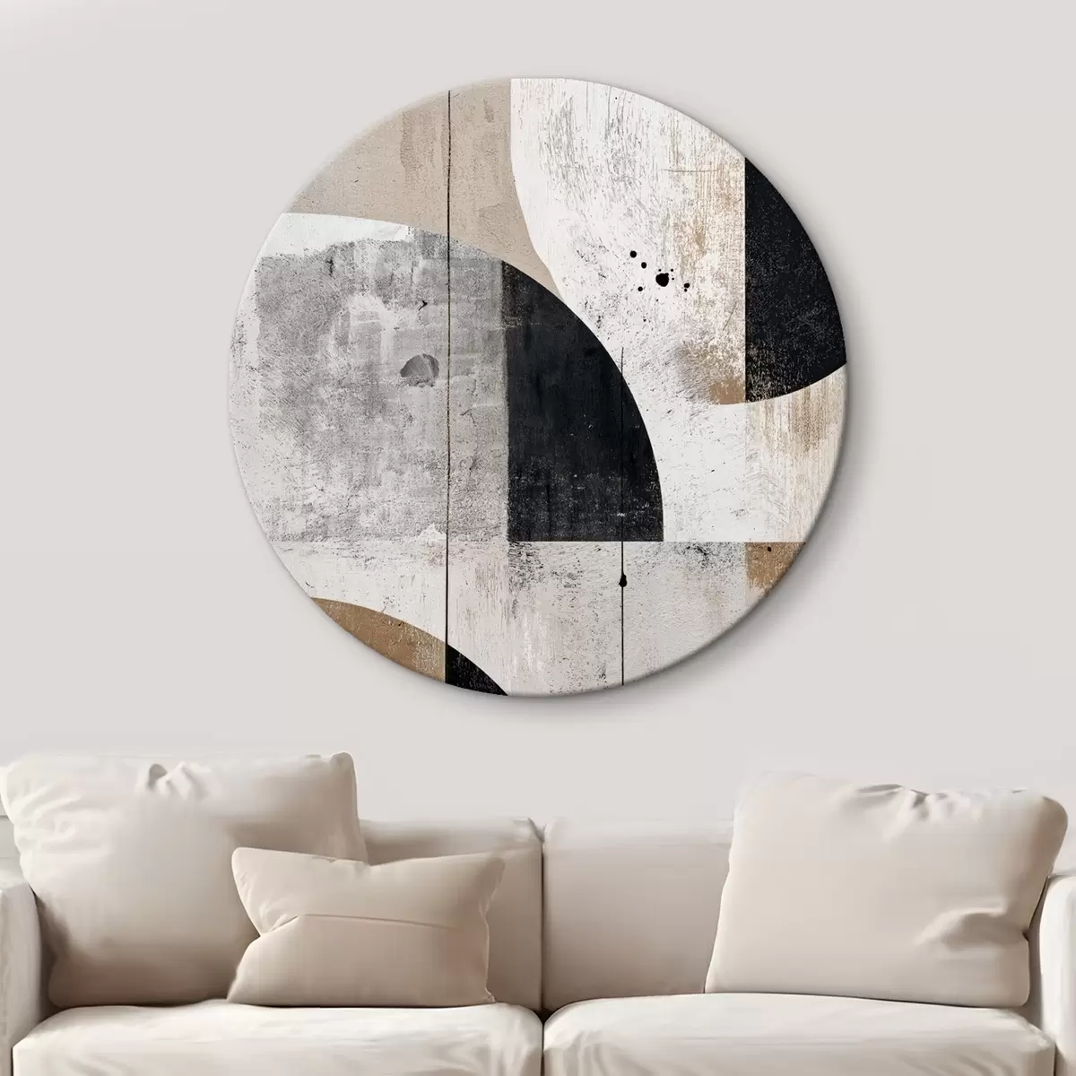 Tableaux rondes Formes géométriques dans les tons gris et beige Nr r45812