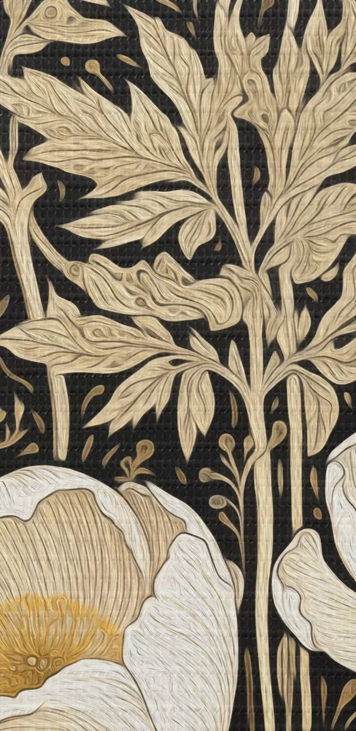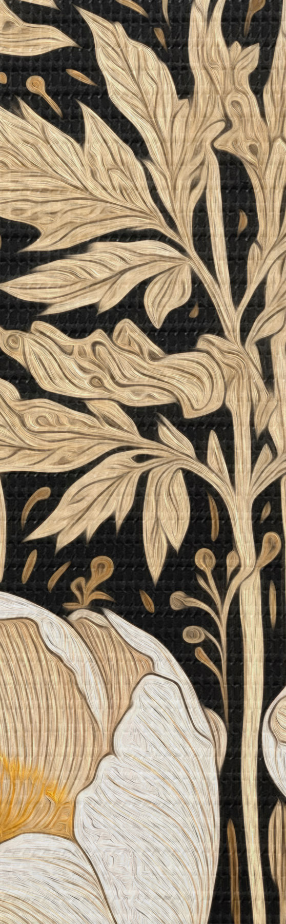 Tableaux rondes Fleurs et herbes crème sur fond noir r45816