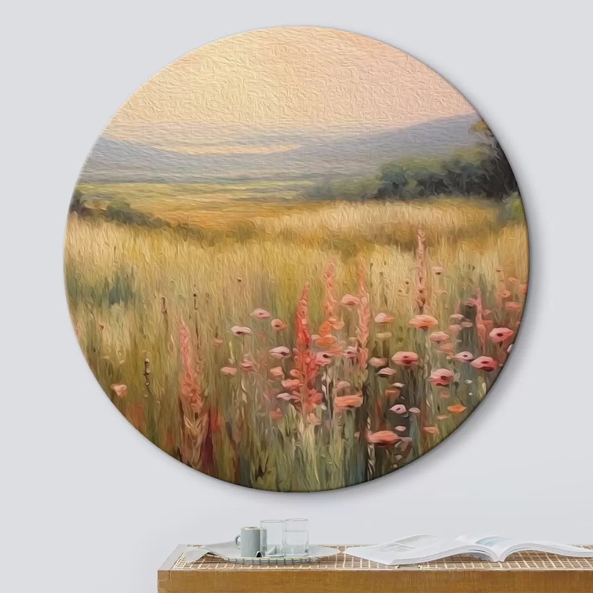 Tableaux rondes Paysage champêtre avec fleurs au coucher du soleil Nr r45818