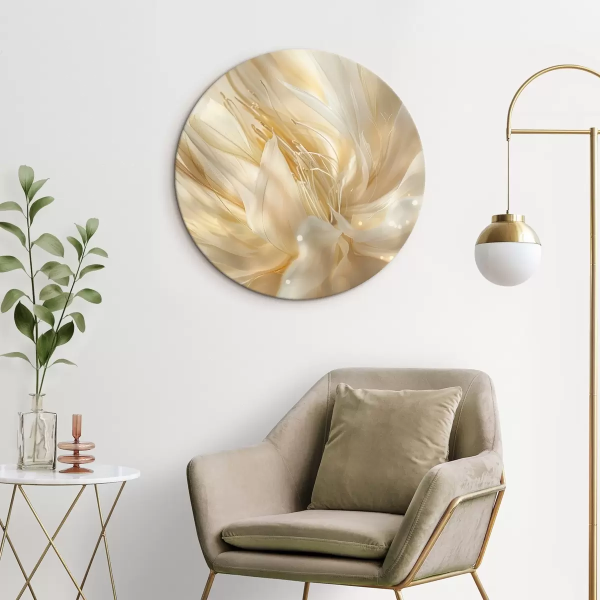 Tableaux rondes Fleur abstraite légère dans une lueur jaune-orange Nr r45819