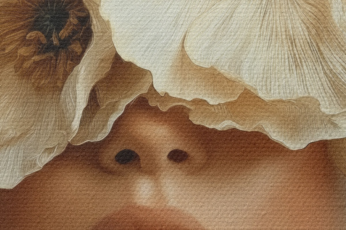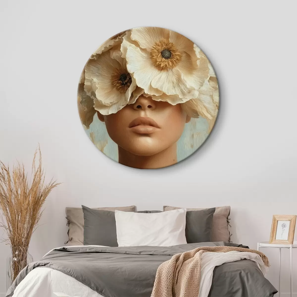 Tableaux rondes Portrait avec des fleurs beiges couvrant les yeux Nr r45870