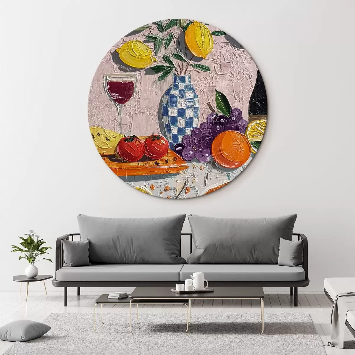 Tableaux rondes Nature morte pastel : citrons, raisins et tomates, empâtement Nr r45876