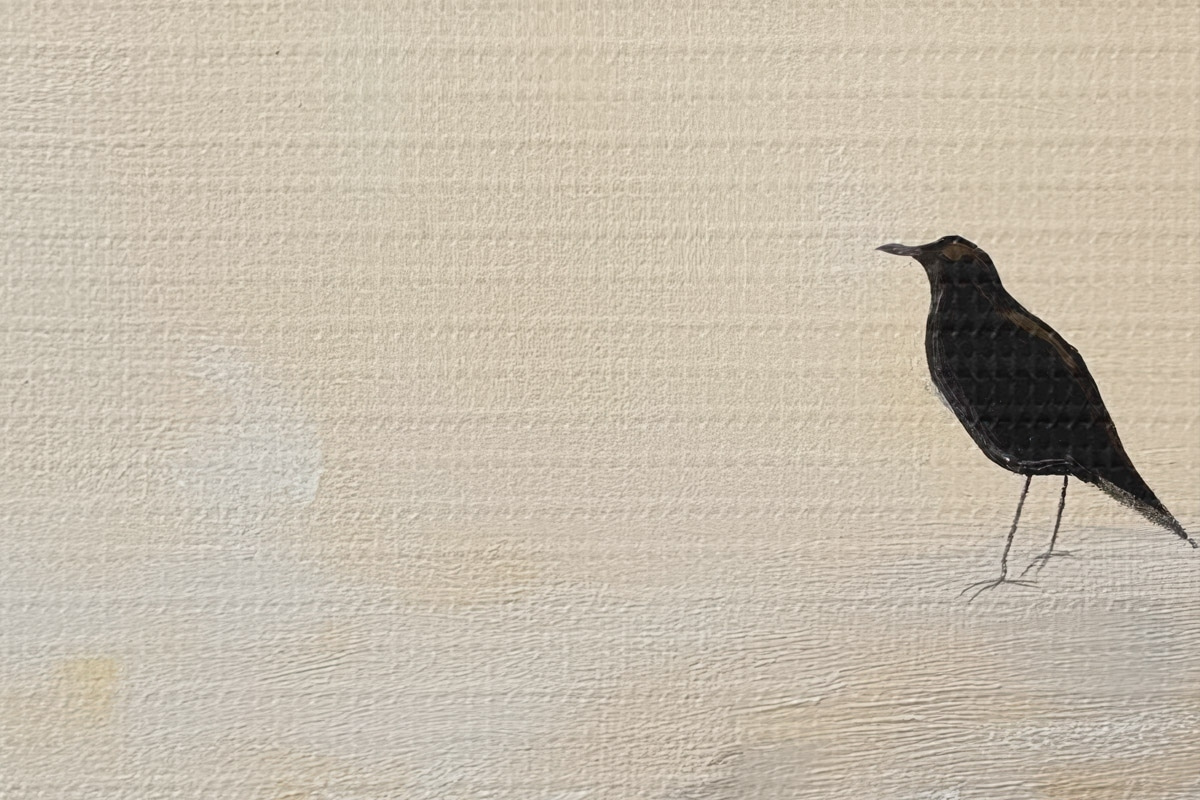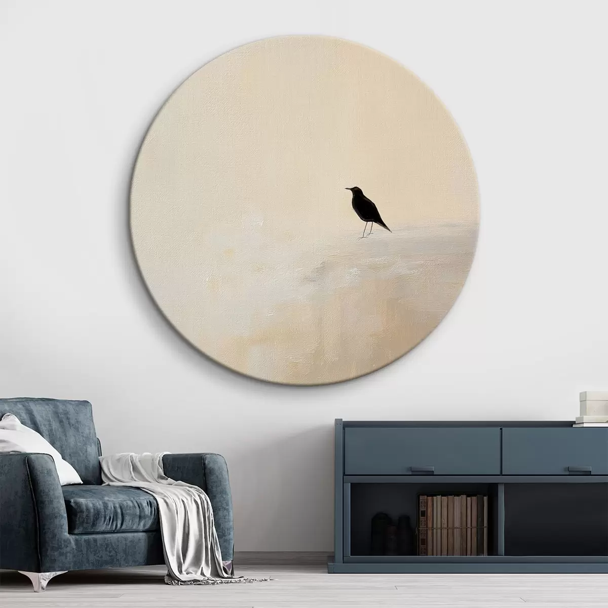 Tableaux rondes Oiseau solitaire sur fond beige chaud Nr r45882