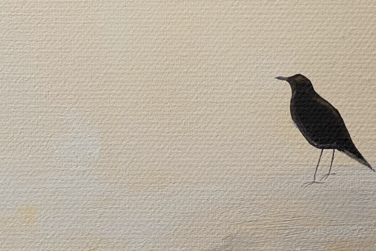 Tableaux rondes Oiseau solitaire sur fond beige chaud r45882