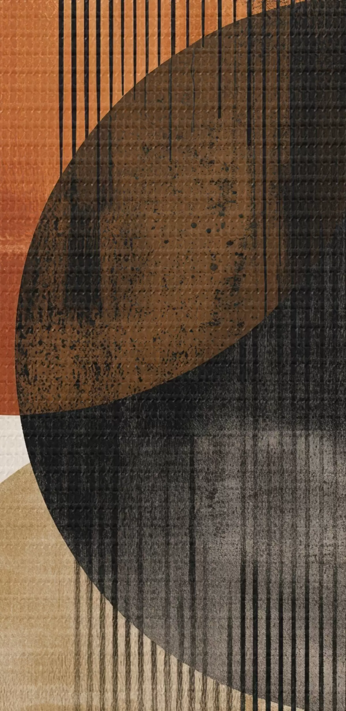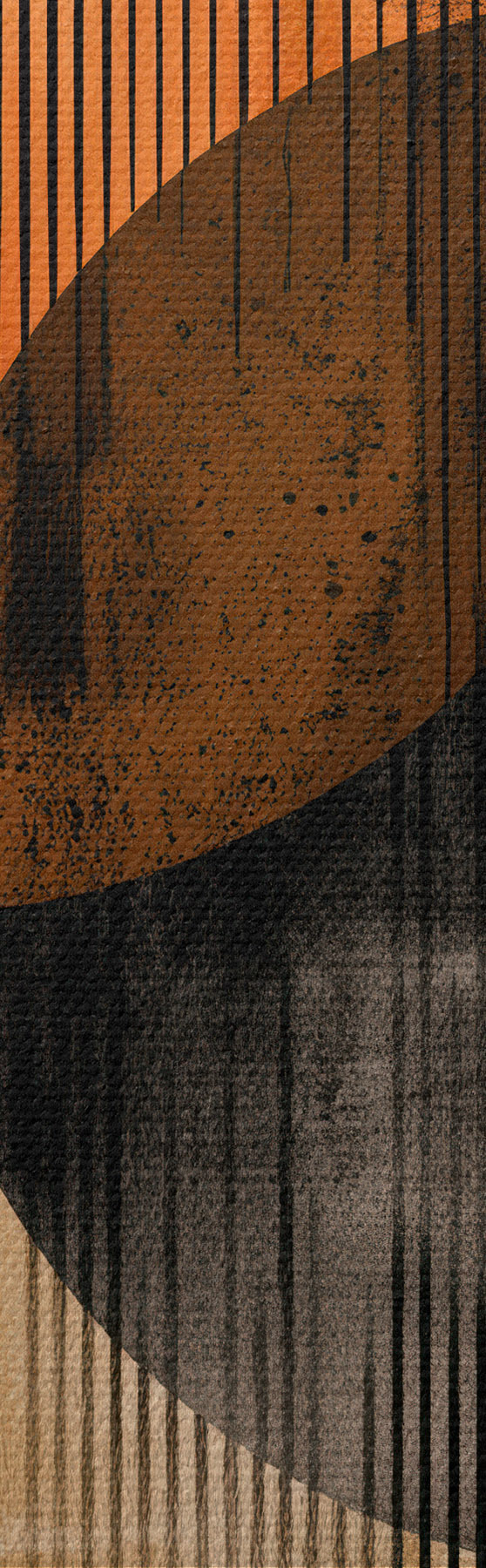 Tableaux rondes Trois cercles texturés avec des lignes dans une palette de couleurs terre cuite et noir Nr r45885