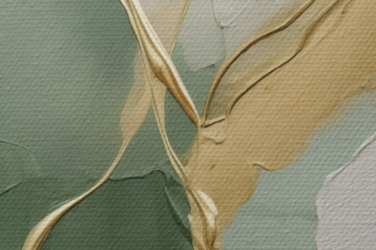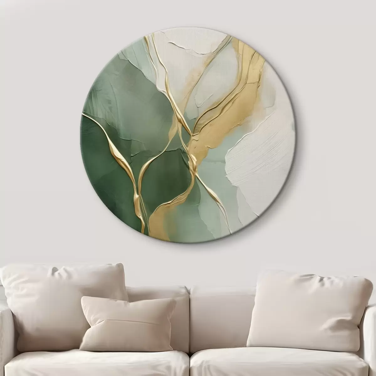 Tableaux rondes Abstraction émeraude-crème avec des ruissellements jaunes r45887
