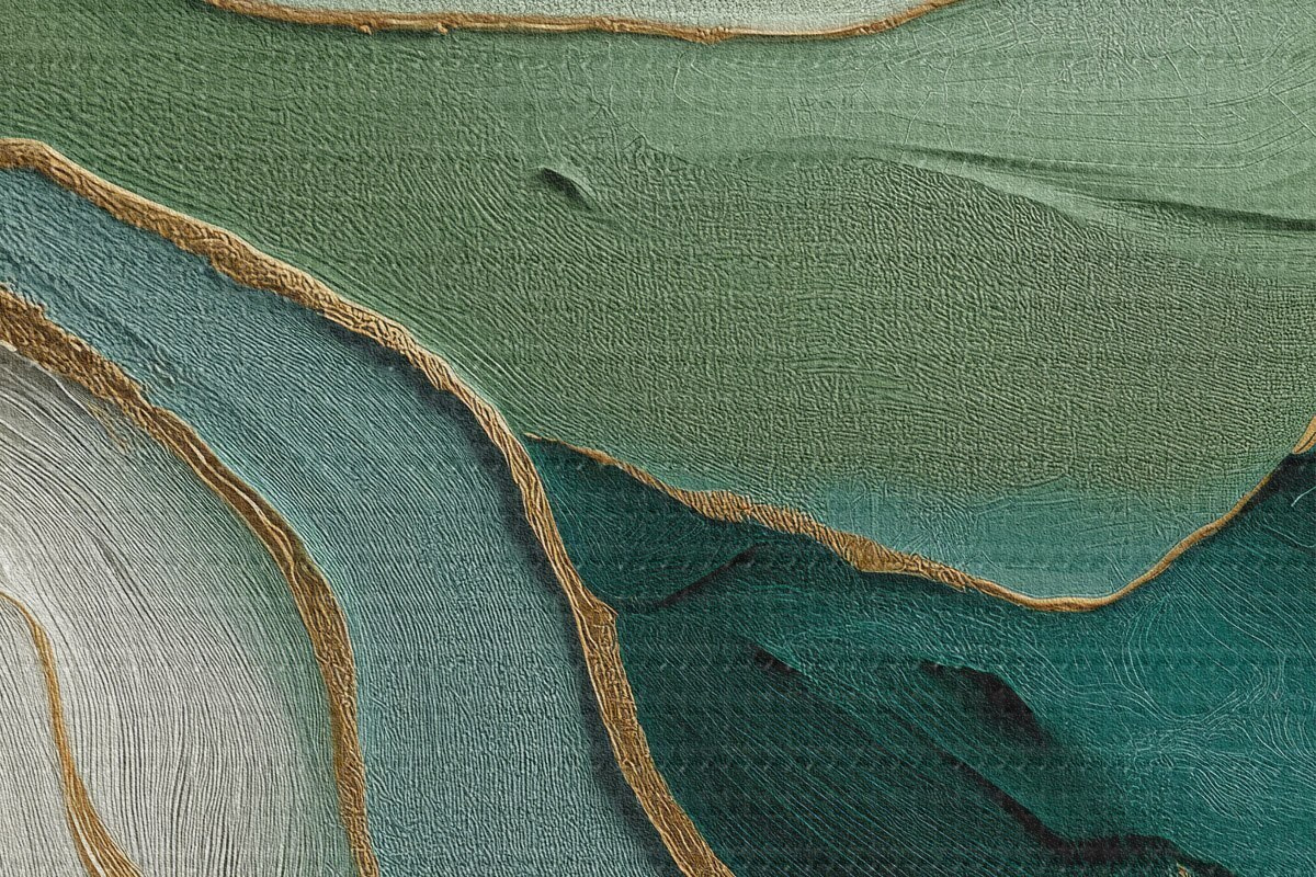 Tableaux rondes Abstraction verte en couches avec des lignes jaunes et de la profondeur r45902