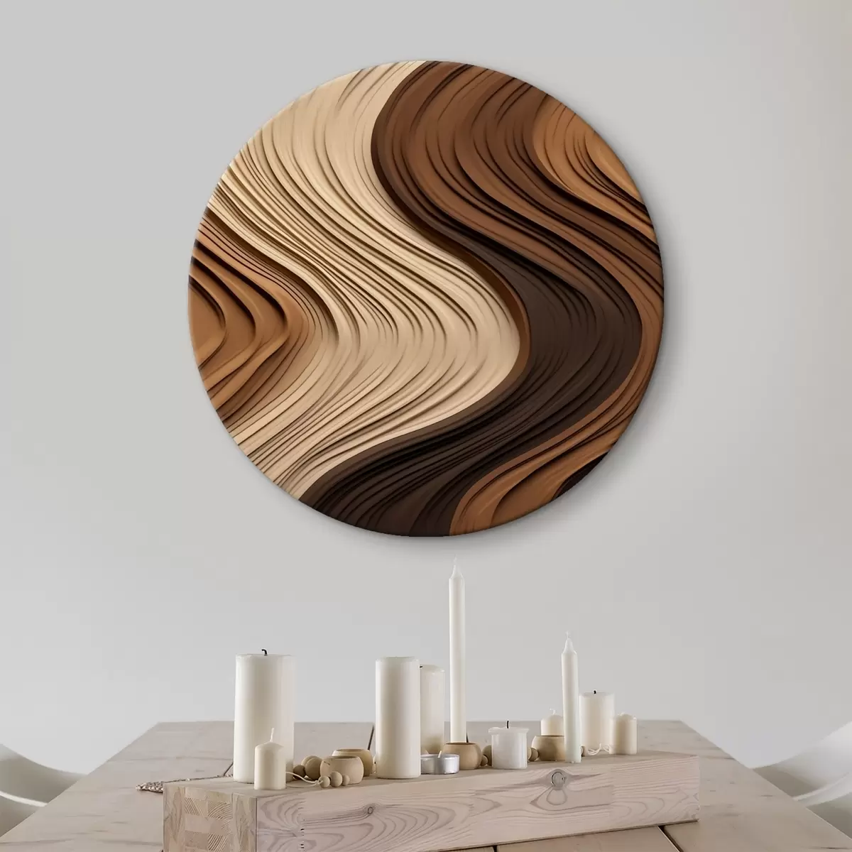 Tableaux rondes Vagues verticales dans des couches chaudes beige-brun r45905