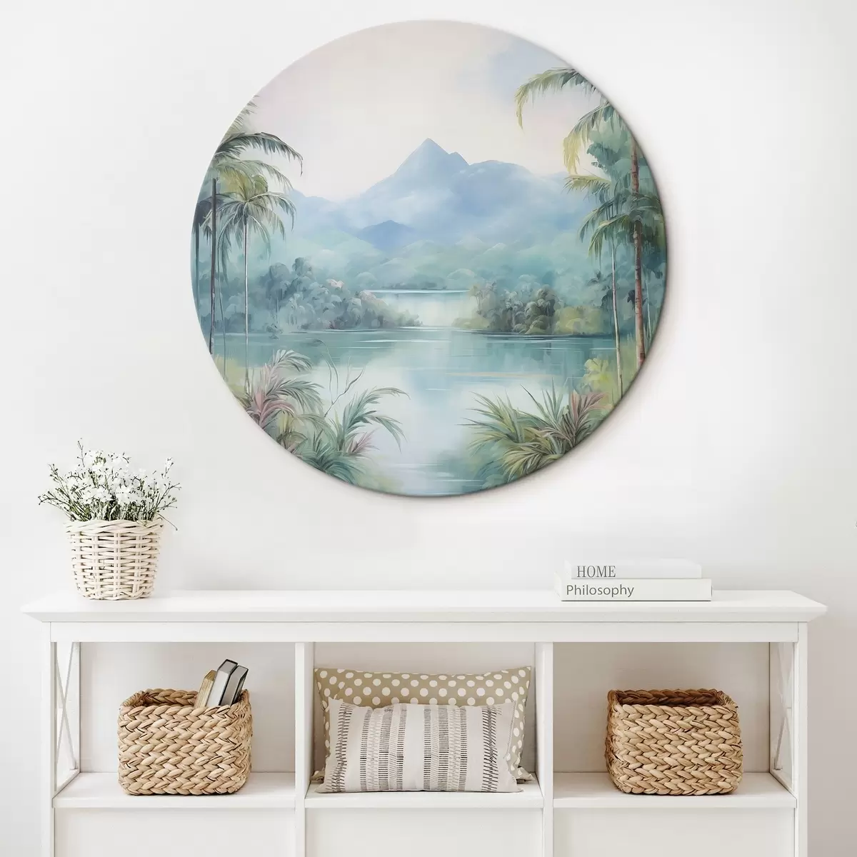 Tableaux rondes Rivière dans la jungle devant la montagne Nr r45912