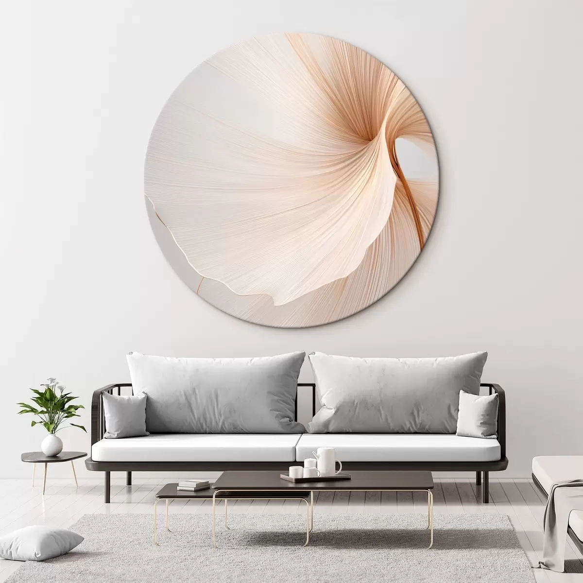 Tableaux rondes Fleurs abstraites aux pétales fins et délicats dans des tons de blanc et de beige Nr r45922