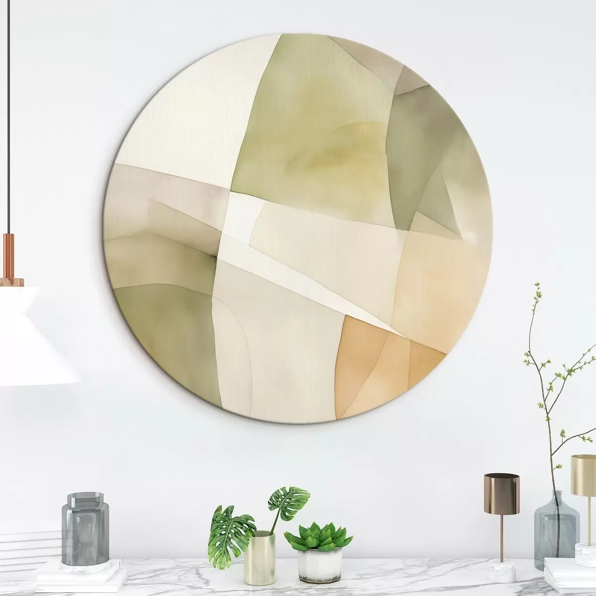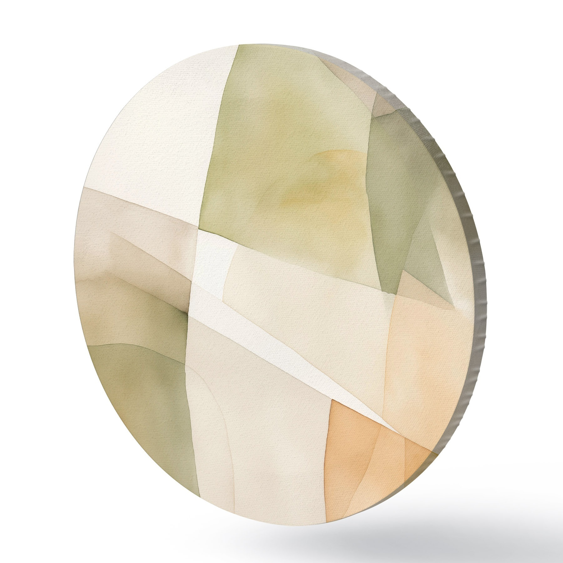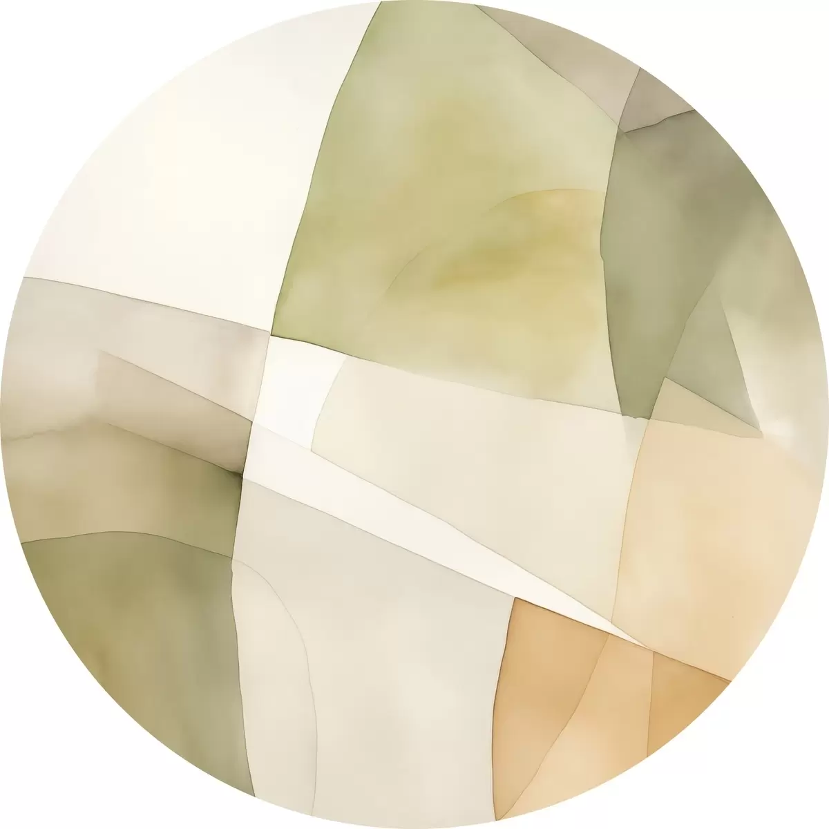 Tableaux rondes Formes géométriques abstraites texturées à l'aquarelle dans des tons de vert, marron et beige Nr r45928