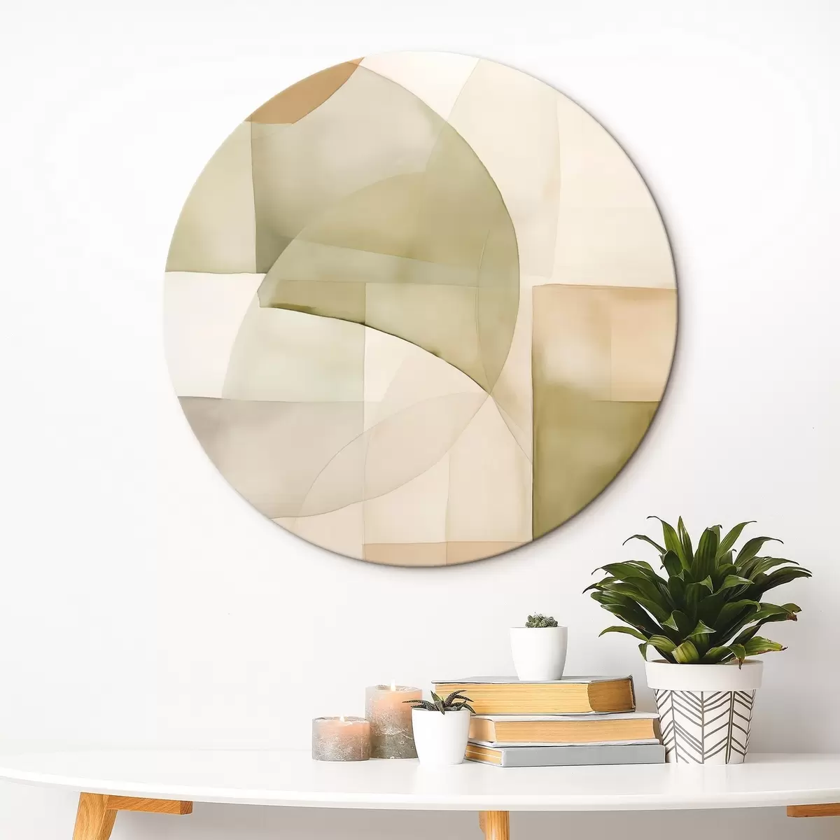 Tableaux rondes Formes géométriques abstraites texturées à l'aquarelle dans des tons de vert, marron et beige Nr r45929