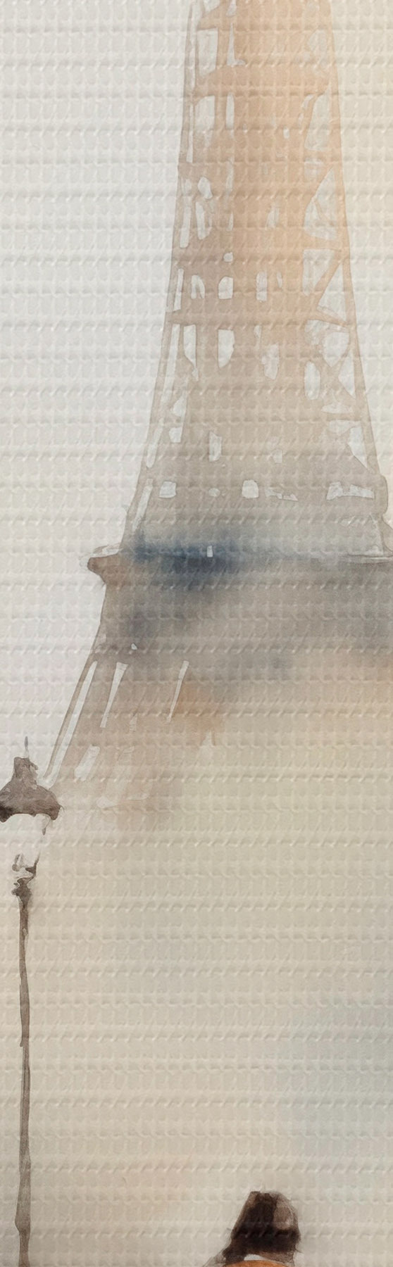 Tableaux rondes Une journée pluvieuse d'automne à Paris avec la Tour Eiffel en arrière-plan et des lampadaires vintage Nr r45931