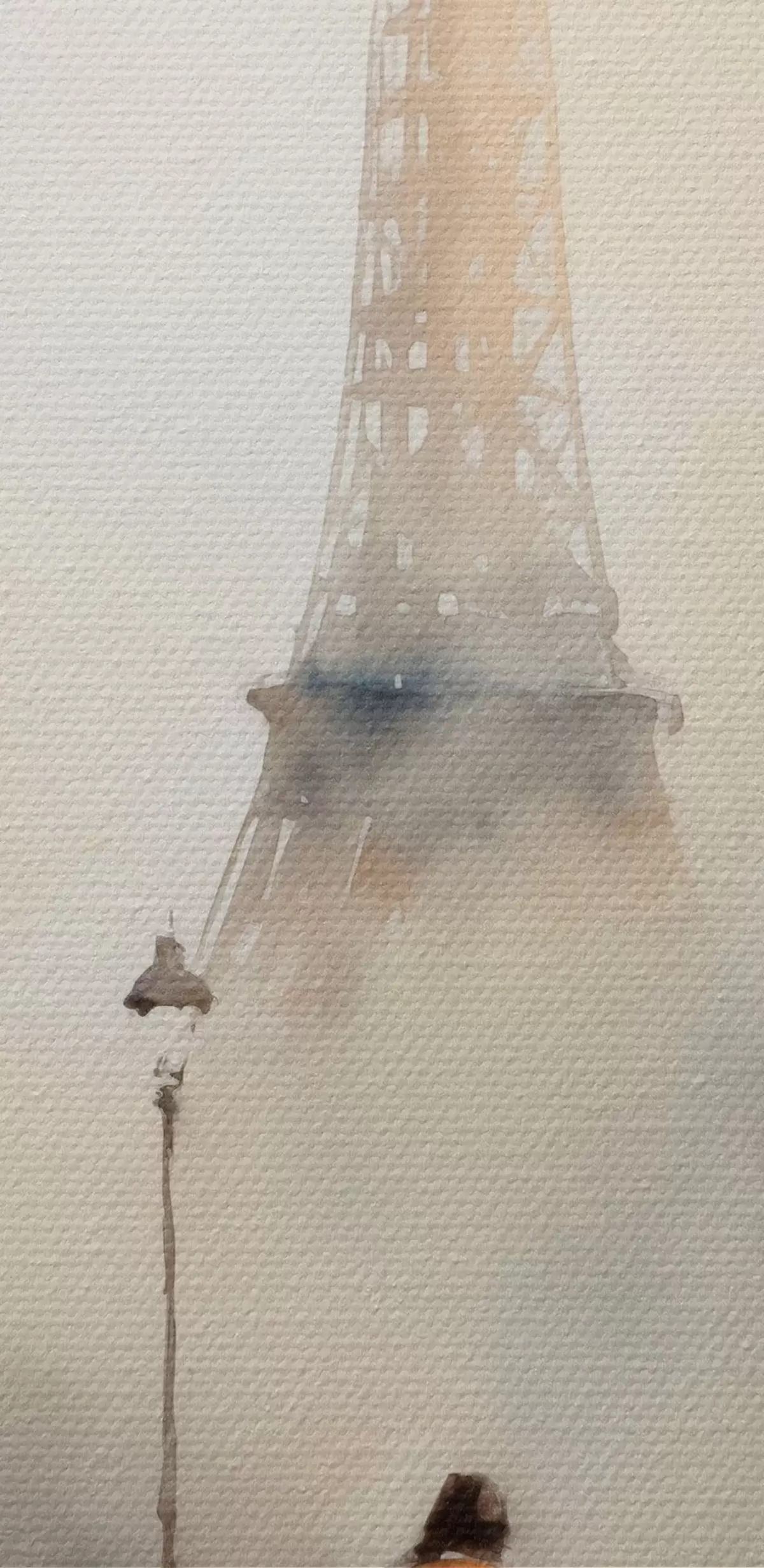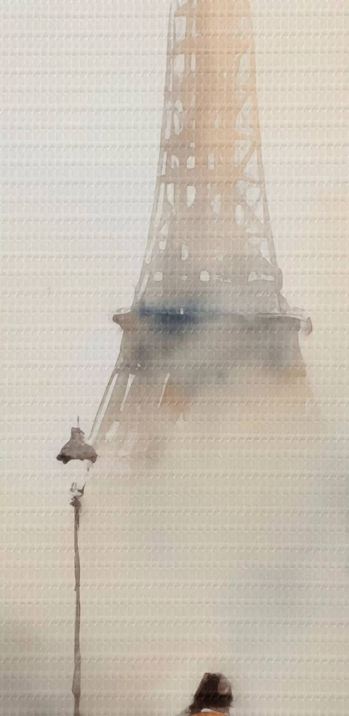 Tableaux rondes Une journée pluvieuse d'automne à Paris avec la Tour Eiffel en arrière-plan et des lampadaires vintage Nr r45931