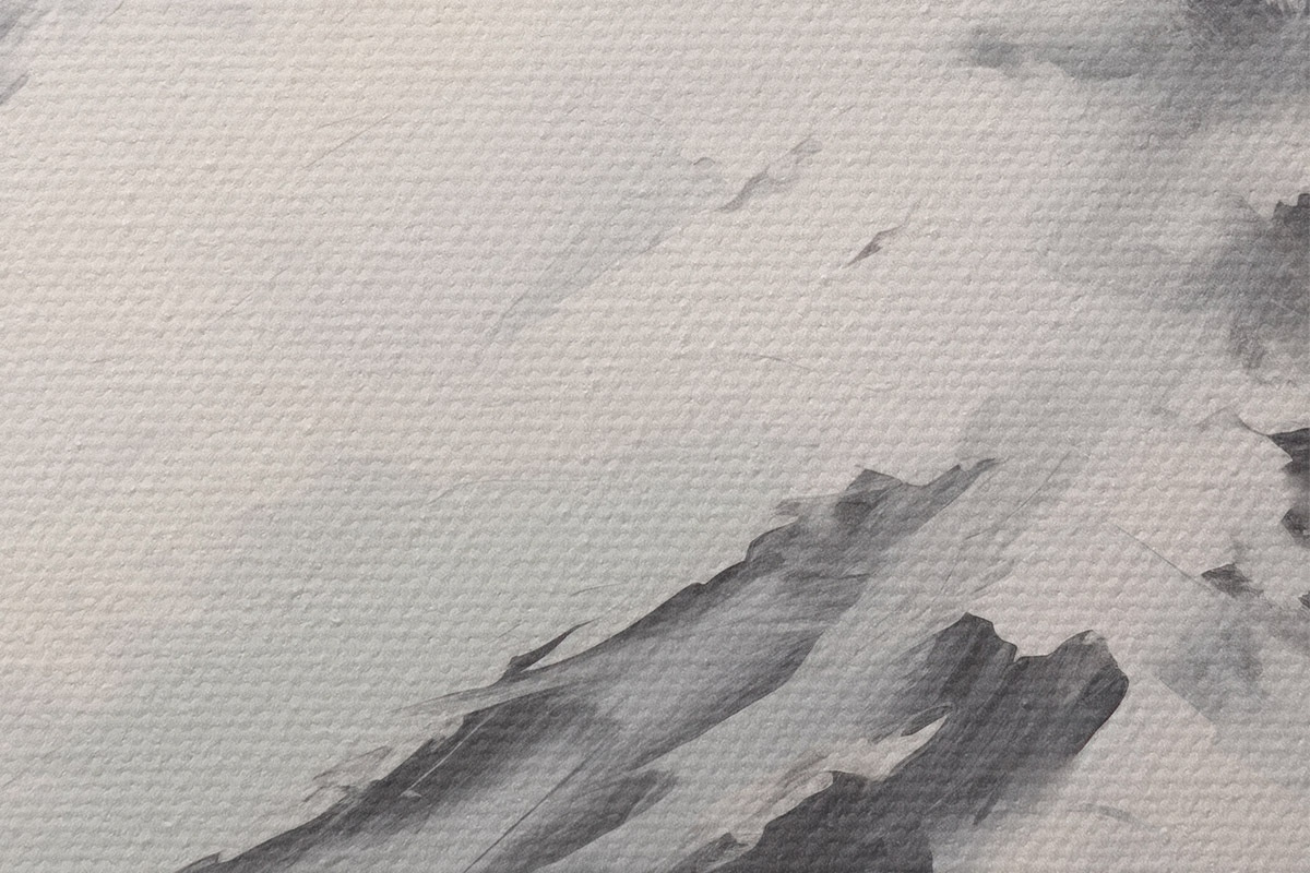 Tableaux rondes Sommets enneigés avec des ombres grises, ciel gris, coups de pinceau, texturé, minimaliste r45932